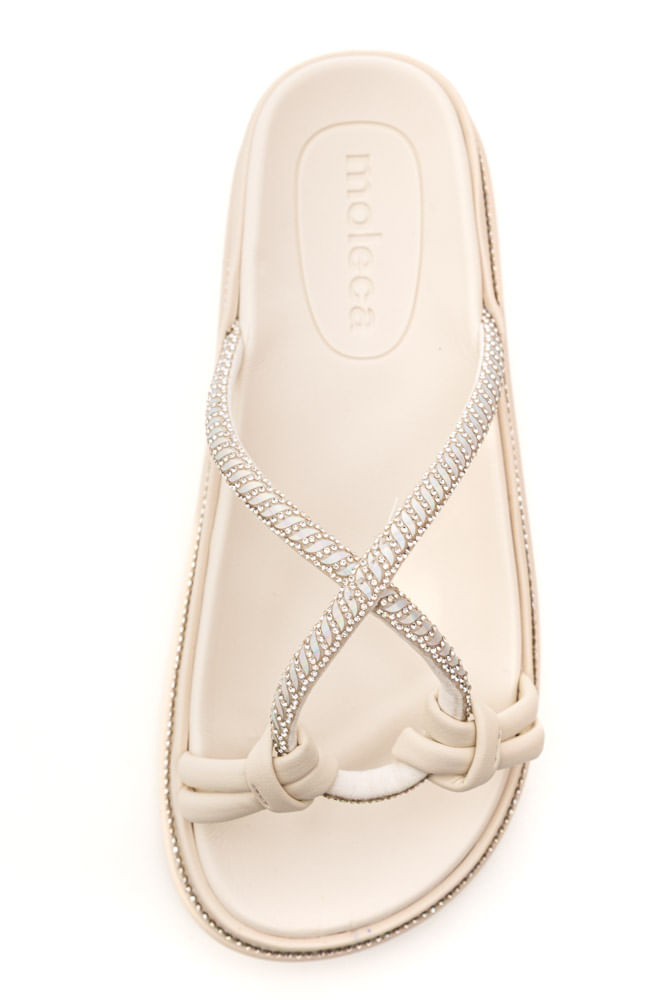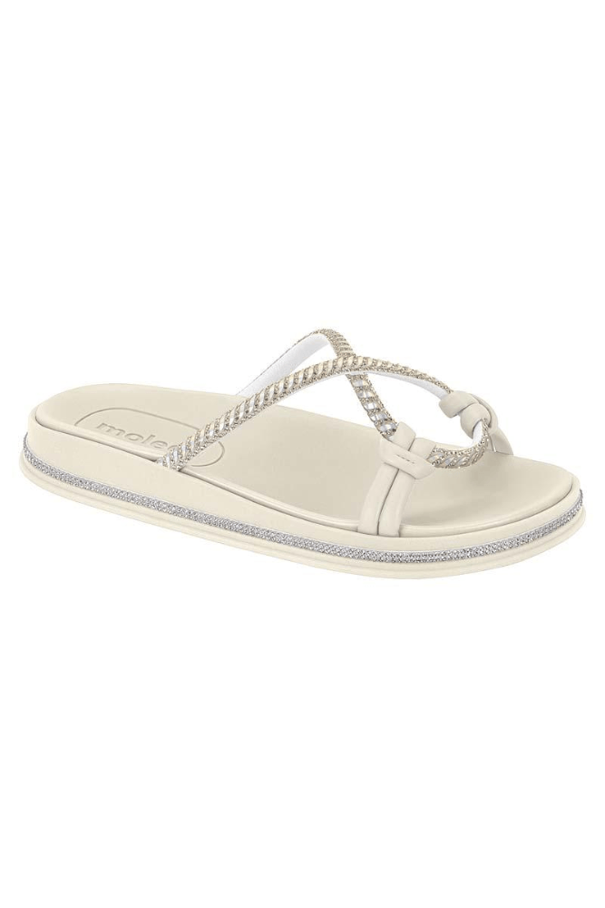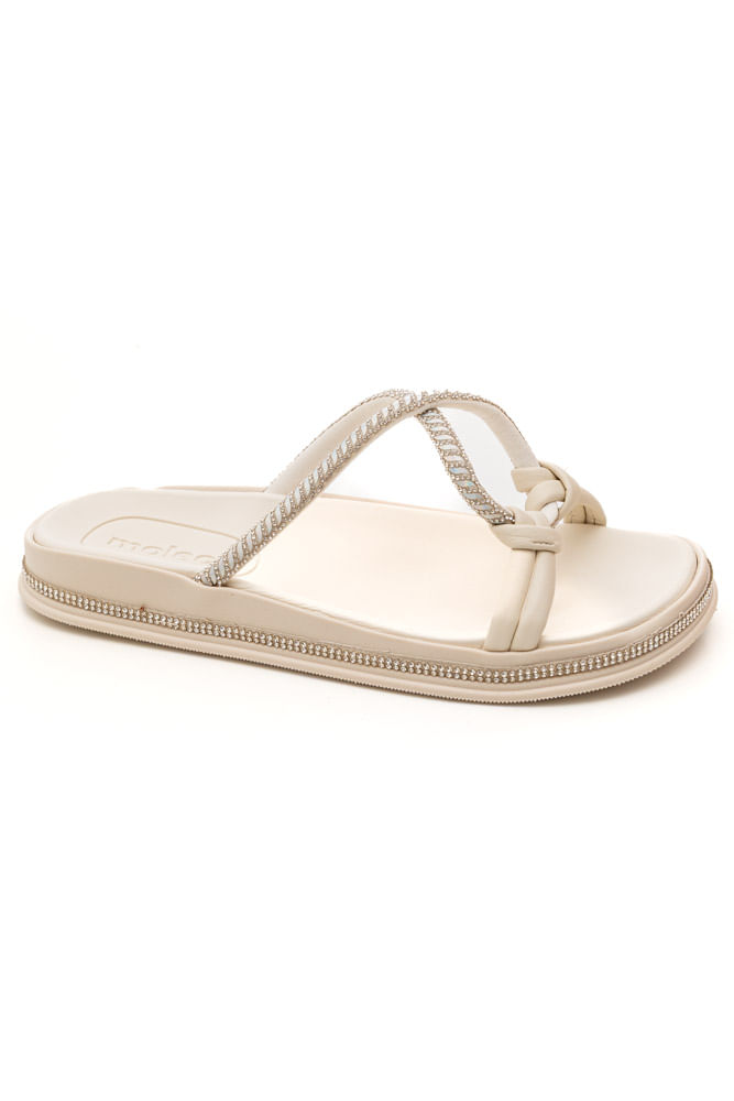 O Chinelo Rasteira Com Strass Molecafeminino Casual 5509.201 é confeccionado em material sintético macio e resistente, garantindo conforto para o dia a dia. O modelo pertence à categoria de rasteiras femininas e conta com solado em borracha TR, que oferece aderência e segurança ao caminhar. Seu bico redondo proporciona um visual delicado, enquanto a palmilha em EVA macio aumenta o bem-estar a cada passo. A estética é moderna e feminina, destacada pelos detalhes trançados em formato de gota com aplicações de strass, que adicionam brilho e elegância à peça. Leve, versátil e perfeita para os dias quentes, essa rasteira permite inúmeras combinações e oferece como grande benefício a união entre estilo e conforto em um único calçado.