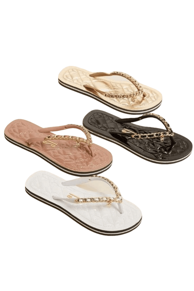 O Chinelo Santa Lolla Feminino Flip Flop Corrente 0106.0d67.09f1 é confeccionado em material sintético, garantindo leveza e durabilidade. Possui solado em borracha com design envernizado em matelassê, que une conforto e estilo. A tira grossa conta com detalhes em corrente, trazendo sofisticação ao visual. O formato flip flop facilita o calce, sem necessidade de fechamento. O logo Santa Lolla está discretamente aplicado, reforçando a marca. Ideal para passeios casuais, combina perfeitamente com shorts e camisetas, valorizando os pés e oferecendo um toque elegante ao look.
