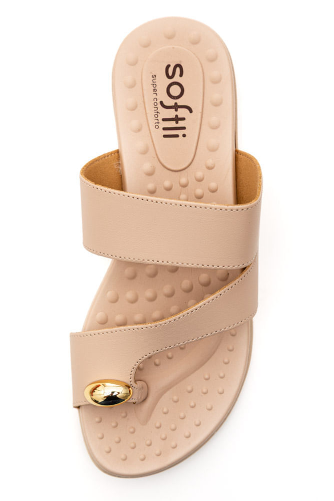 Para um dia de trabalho leve ou passeio casual, combine o chinelo Softli rasteiro com vestido midi fluido ou calça pantacourt e blusa básica. Acrescente bolsa tiracolo e acessórios delicados. O look fica confortável, elegante e prático, ideal para longas horas em pé sem abrir mão do estilo.