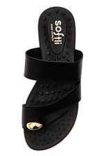 Para um dia de trabalho leve ou passeio casual, combine o chinelo Softli rasteiro com vestido midi fluido ou calça pantacourt e blusa básica. Acrescente bolsa tiracolo e acessórios delicados. O look fica confortável, elegante e prático, ideal para longas horas em pé sem abrir mão do estilo.