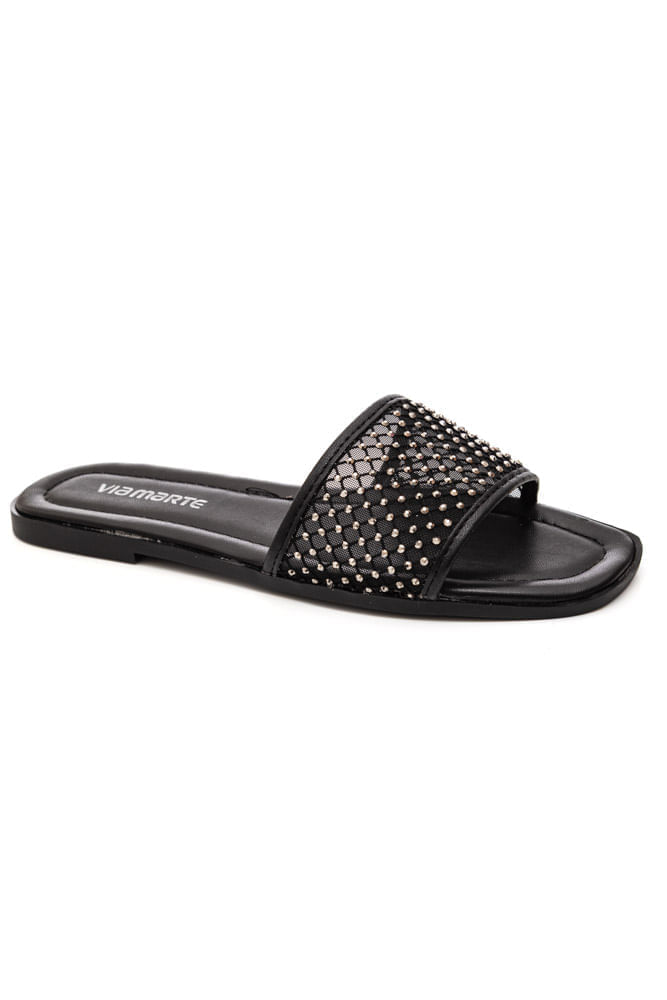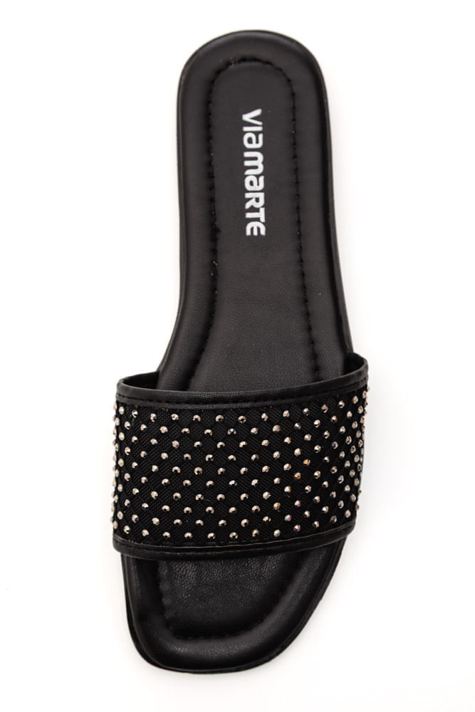Chinelo Via Marte Feminino Tira Larga Tela Com Strass 184-001-01 Preto