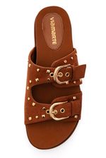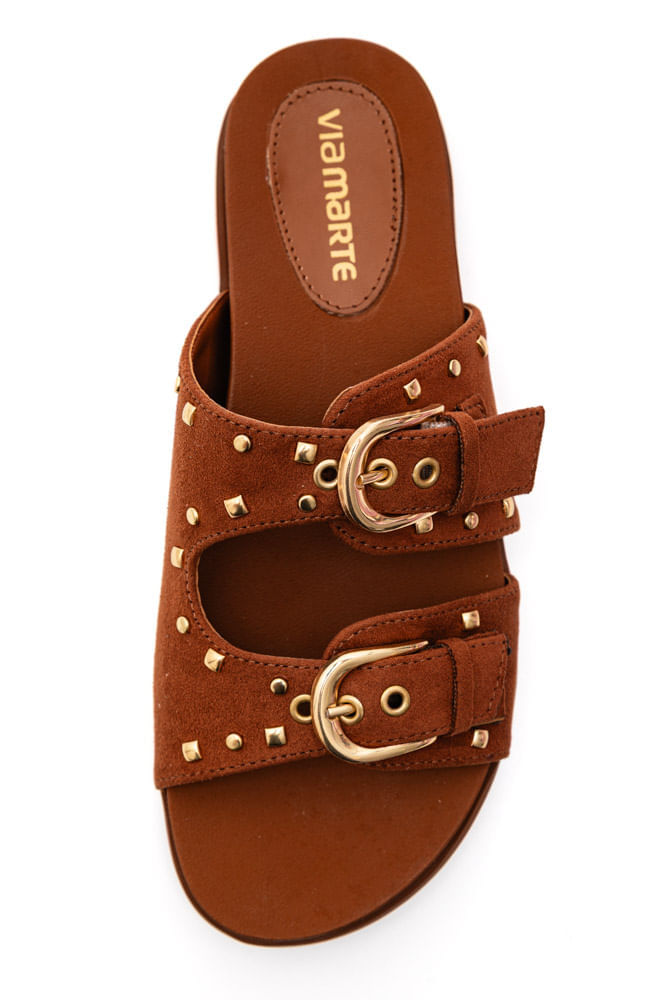 O Chinelo Via Marte Papete Feminina Camurça 174-020-01 é confeccionado em camurça com forro em sintético PU, trazendo toque macio e resistente. Possui solado flat em PVC expandido, com altura de 2,5 cm, garantindo leveza e durabilidade. O design anatômico apresenta bico arredondado e tiras largas com fivelas funcionais sobre o pé. Seu fechamento é prático e seguro, acompanhado de aplicações de tachas metalizadas que dão um ar boho-chic. O logo da marca aparece em detalhe discreto, reforçando a autenticidade. Versátil e confortável, é ideal para looks casuais com personalidade e estilo.