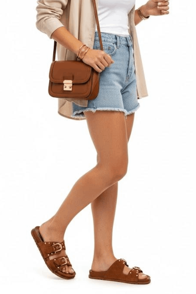 Para um look cheio de estilo com o Chinelo Via Marte Papete, combine-o com um short jeans soltinho e uma blusa em algodão leve, criando conforto e frescor. Finalize com acessórios em prata ou couro natural e uma bolsa tiracolo estruturada, garantindo um visual boho-casual moderno, ideal para passeios ou encontros descontraídos.