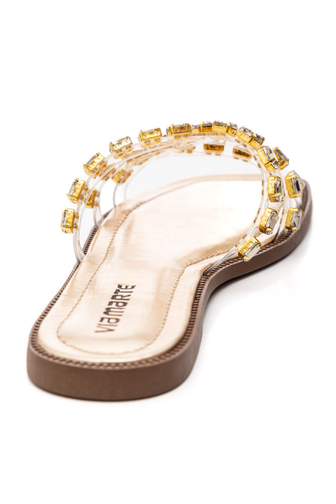 Chinelo Via Marte Rasteiro Feminino Com Strass 291-008-01 Ouro