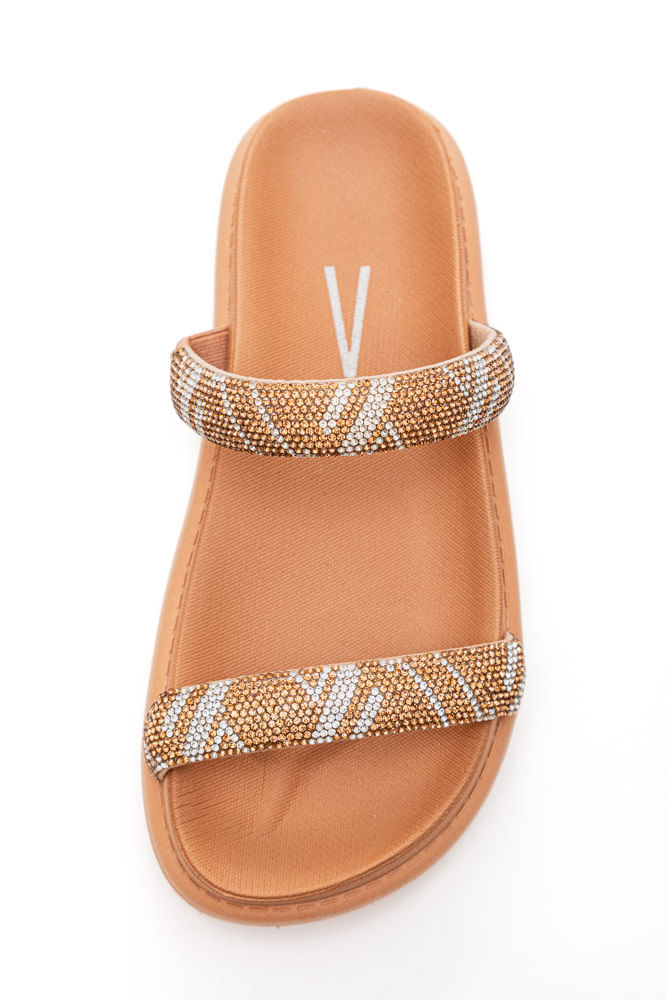 Chinelo Vizzano Papete Feminina 2 Tiras Strass 6459.110 Bege