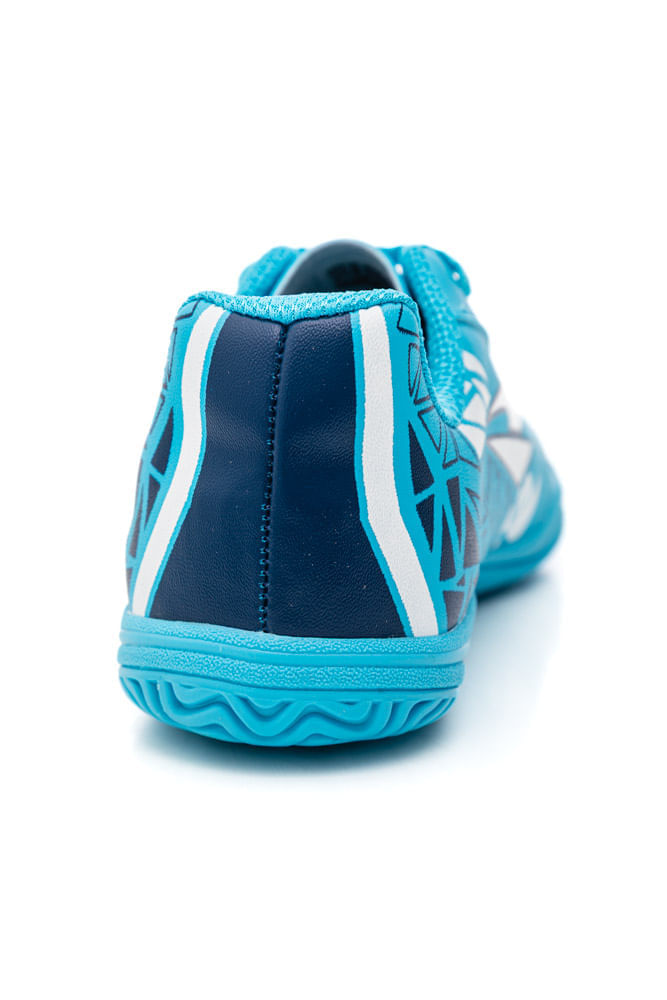Tecnologia IC (Indoor Court): Solado desenvolvido para quadras internas, proporcionando tração eficiente e estabilidade em pisos lisos, ideal para futsal, garante segurança nas mudanças rápidas de direção.