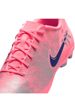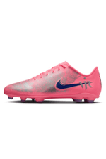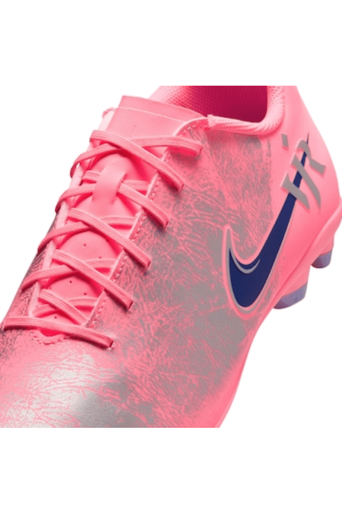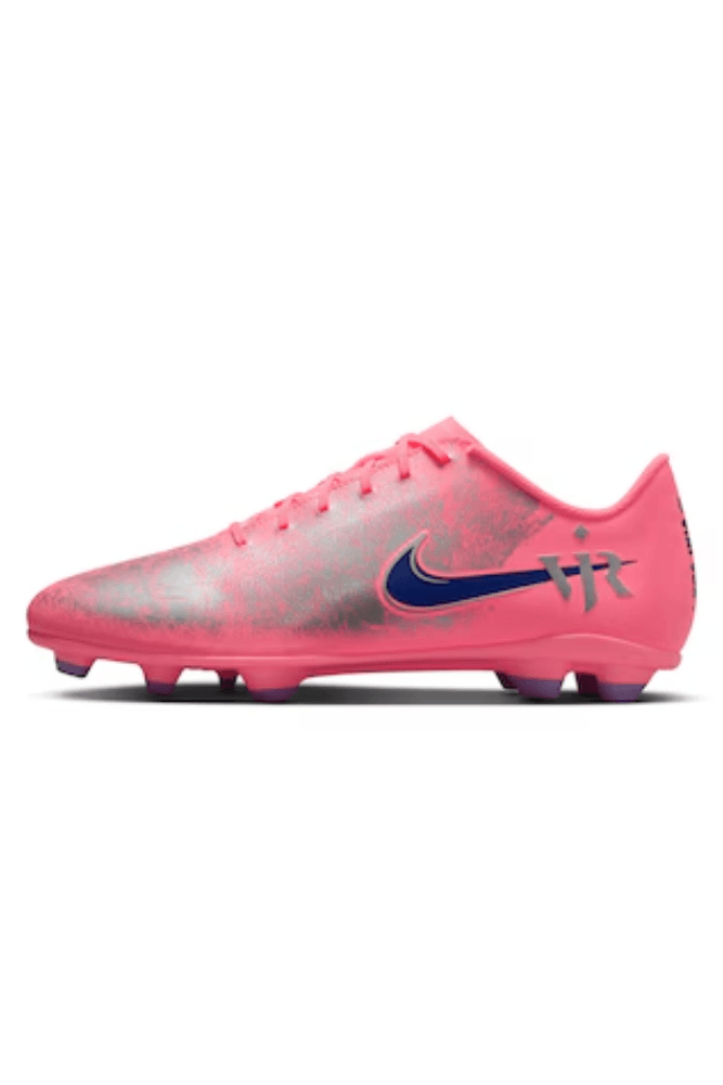 A Chuteira Nike Campo Mercurial Vapor 16 Club Vini Jr. IM3647-640 da Nike foi feita para quem quer se destacar em campo. O cabedal em couro sintético aderente oferece toque preciso na bola, com biqueira arredondada que garante conforto aos dedos. O fechamento em cadarço proporciona ajuste seguro, enquanto a lingueta e o colarinho acolchoados oferecem suporte extra. A palmilha macia e a calcanheira estruturada aumentam o conforto, e o forro interno envolve o pé naturalmente. O solado com placas e travas moldadas assegura tração rápida em gramados naturais e sintéticos, absorção de impacto responsiva e movimentação ágil. Um modelo marcante, ideal para quem busca controle, estabilidade e estilo em campo.