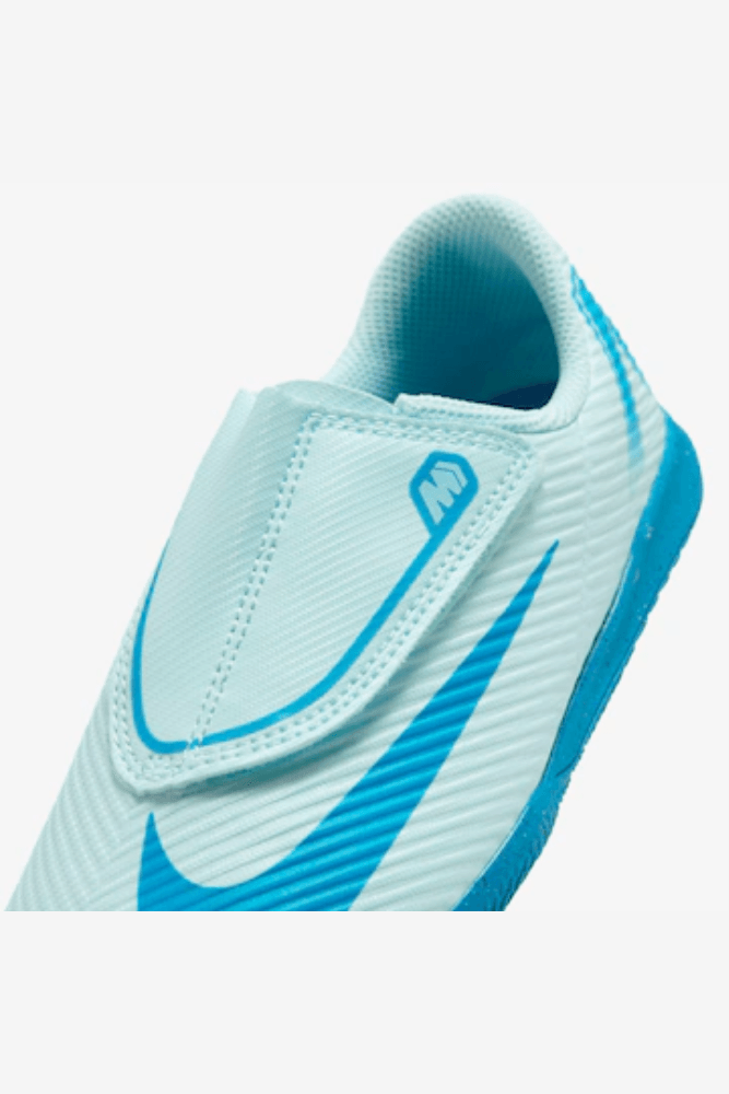A Chuteira Nike Mercurial Vapor 16 Club Infantil Menino Futsal Hq2120-400 traz um cabedal em material sintético leve com textura em alto-relevo, oferecendo melhor domínio de bola e excelente durabilidade. Seu sistema de ajuste sem cadarços conta com tira aderente, garantindo praticidade e encaixe firme. A biqueira possui reforço para maior resistência nos chutes, enquanto a palmilha anatômica e acolchoada proporciona conforto prolongado. A entressola em EVA leve colabora com o amortecimento, reduzindo impactos durante o jogo. O solado em borracha, ideal para futsal, entrega tração rápida e segura em quadras indoor e superfícies lisas. O interior respirável mantém os pés ventilados, ajudando a evitar desconfortos. Conforto, leveza e estabilidade se unem para incentivar o melhor desempenho dos pequenos craques.