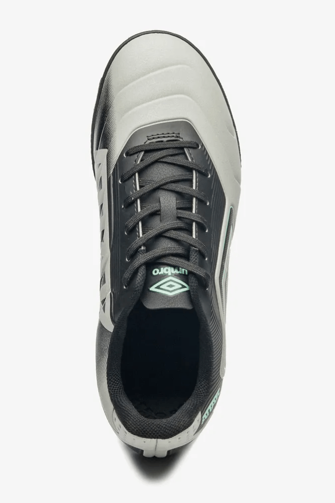 Para uma partida em gramado sintético, combine a chuteira Umbro Attak com meião esportivo, short leve de futebol e camisa dry fit respirável. Acrescente caneleiras para proteção e finalize com uma jaqueta esportiva no pré e pós-jogo. Leve uma mochila prática para seus acessórios. Um visual completo para desempenho, conforto e confiança em campo.