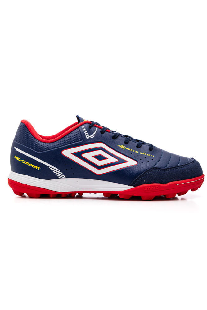 A Chuteira Umbro Neo-Comfort Society Masculina U03fb00431 apresenta cabedal 100% sintético, resistente e de fácil ajuste, oferecendo firmeza e suporte durante os movimentos rápidos. O acabamento interno em poliéster melhora a respirabilidade, mantendo os pés mais secos ao longo da partida. A palmilha anatômica em EVA garante amortecimento suave e confortável, ajudando a reduzir o impacto em cada passada. O solado é construído em 50% EVA e 50% TPU, formando uma base leve, durável e com excelente tração para gramados society, graças às travas baixas que proporcionam estabilidade e respostas rápidas. O reforço na biqueira aumenta a durabilidade em chutes e arrancadas, enquanto o sistema de amarração tradicional assegura ajuste preciso. Uma chuteira projetada para desempenho, leveza e conforto em todas as jogadas.