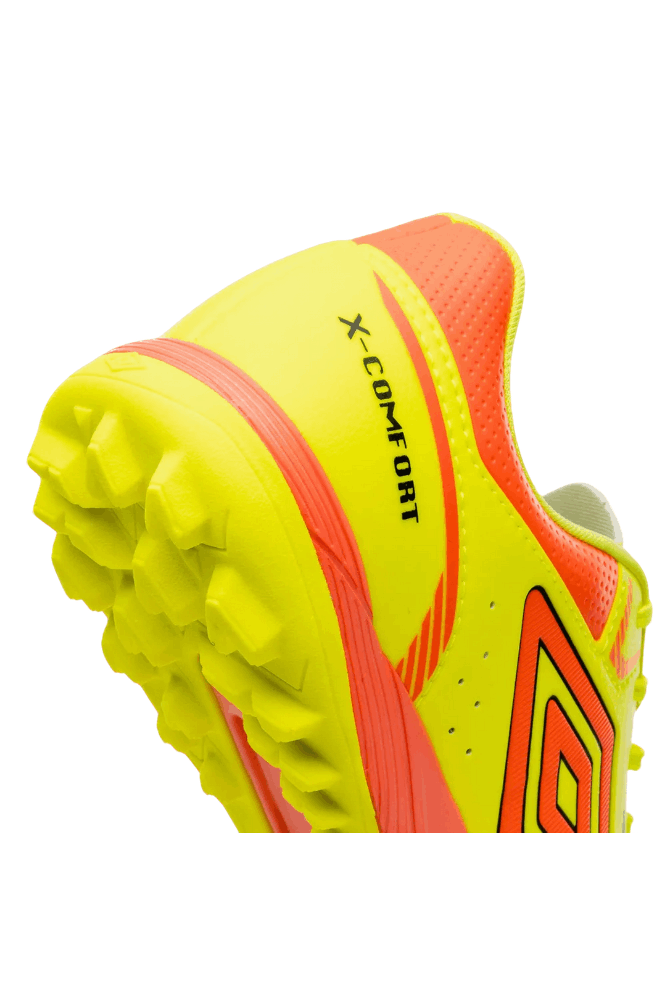 Combine a chuteira Umbro X-Comfort com um short de treino leve, camisa dry fit respirável e meião esportivo para garantir mobilidade e conforto nas partidas de futebol society. Complete o visual com um agasalho esportivo para o aquecimento e uma bolsa esportiva compacta. Ideal para quem busca performance, estilo esportivo e praticidade antes, durante e após o jogo.