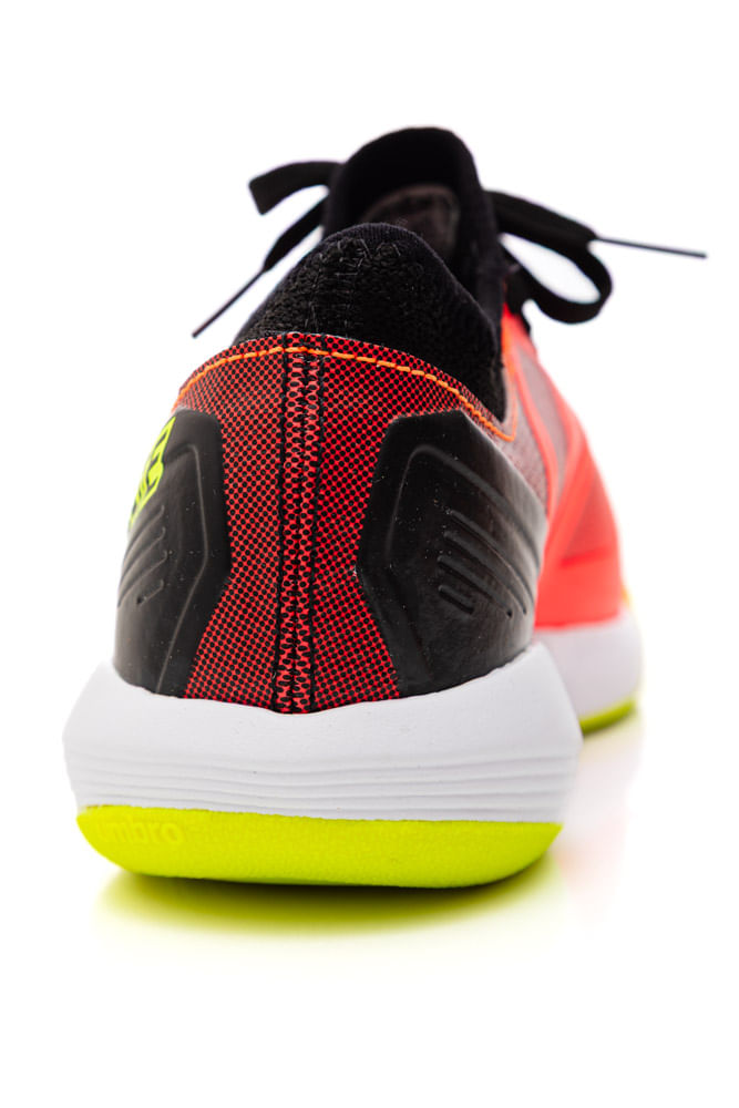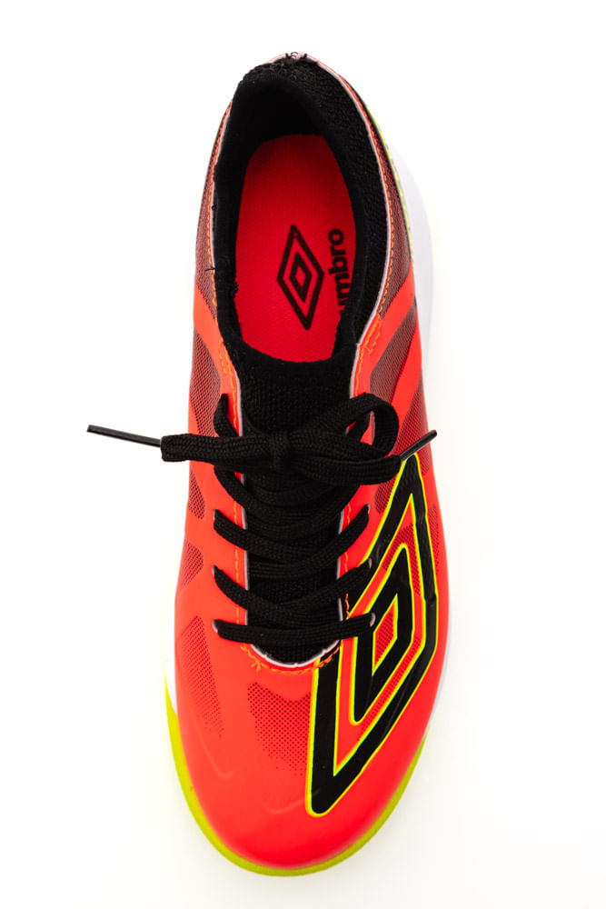 CHUTEIRA UMBRO U07FB00261-016 Chuteira Infantil Umbro Ultimate JR - Domine a Quadra com Estilo e Conforto! A Chuteira Umbro Ultimate JR foi desenvolvida para os jovens talentos do futebol society e futsal, inspirada nas últimas tendências do cenário futebolístico e com o mesmo design impactante do modelo adulto. Ela é a escolha ideal para boleiros mirins que buscam estilo, conforto e desempenho para dominar as partidas. Características: Design Moderno e Impactante: Apresenta um visual arrojado, com grafismo camuflado geométrico em serigrafia. Disponível em cores vibrantes como Limão/Marinho/Verde Limão e Royal/Branco/Rococo, além de Preto e Branco. Conforto Superior: Possui calce tipo meia em tecido com elastano e acabamento em debrum, proporcionando um ajuste macio e confortável. A palmilha interna é em EVA forrado para maior conforto. Cabedal Resistente: Construído em material laminado emborrachado liso, com toque macio e detalhes em janelas de alta frequência. O cabedal é composto por 85% sintético e 15% poliéster. Solado Específico para Society/Futsal: Society: Solado de TPU monocolor com sistema de travas cônicas e entressola em EVA para maior conforto. Futsal: Solado de borracha monocolor antiderrapante e entressola em EVA para maior conforto. Detalhes da Marca: Conta com o maxi Diamante Umbro aplicado na região frontal e a assinatura do modelo na lateral externa da parte posterior. A Chuteira Umbro Ultimate JR é a parceira perfeita para os futuros craques que desejam brilhar em campo com muito estilo, conforto e a qualidade garantida da Umbro.