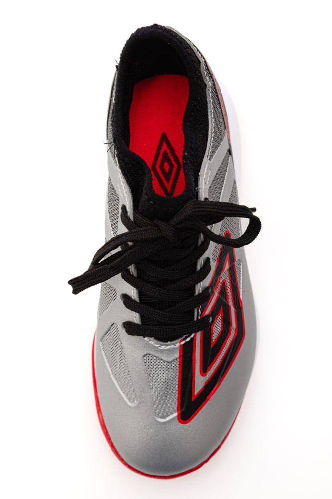 CHUTEIRA UMBRO U07FB00261-814 Chuteira Infantil Umbro Ultimate JR - Domine a Quadra com Estilo e Conforto! A Chuteira Umbro Ultimate JR foi desenvolvida para os jovens talentos do futebol society e futsal, inspirada nas últimas tendências do cenário futebolístico e com o mesmo design impactante do modelo adulto. Ela é a escolha ideal para boleiros mirins que buscam estilo, conforto e desempenho para dominar as partidas. Características: Design Moderno e Impactante: Apresenta um visual arrojado, com grafismo camuflado geométrico em serigrafia. Disponível em cores vibrantes como Limão/Marinho/Verde Limão e Royal/Branco/Rococo, além de Preto e Branco. Conforto Superior: Possui calce tipo meia em tecido com elastano e acabamento em debrum, proporcionando um ajuste macio e confortável. A palmilha interna é em EVA forrado para maior conforto. Cabedal Resistente: Construído em material laminado emborrachado liso, com toque macio e detalhes em janelas de alta frequência. O cabedal é composto por 85% sintético e 15% poliéster. Solado Específico para Society/Futsal: Society: Solado de TPU monocolor com sistema de travas cônicas e entressola em EVA para maior conforto. Futsal: Solado de borracha monocolor antiderrapante e entressola em EVA para maior conforto. Detalhes da Marca: Conta com o maxi Diamante Umbro aplicado na região frontal e a assinatura do modelo na lateral externa da parte posterior. A Chuteira Umbro Ultimate JR é a parceira perfeita para os futuros craques que desejam brilhar em campo com muito estilo, conforto e a qualidade garantida da Umbro.