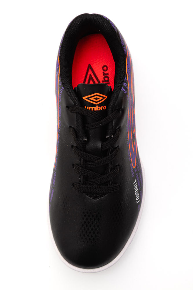 CHUTEIRA UMBRO U07FB00415-106 Chuteira Infantil Umbro Football JR - Domine o Jogo com Estilo! Prepare os pequenos craques para brilhar em campo com a Chuteira Umbro Football JR. Projetada para oferecer desempenho e estilo, esta chuteira é ideal para jovens atletas que buscam controle e conforto durante as partidas. Características: Design Moderno e Vibrante: Apresenta um cabedal predominantemente preto, com um padrão gráfico em roxo e detalhes em laranja, incluindo o icônico losango da Umbro. A palavra "FOOTBALL" é sutilmente integrada ao design, conferindo um visual dinâmico e esportivo. Conforto e Ajuste: Com cadarço para um ajuste seguro e personalizado, o tênis proporciona conforto durante todo o jogo. Performance em Campo/Quadra: O solado em tom de cinza, com ranhuras e texturas específicas, oferece tração e aderência ideais para diferentes superfícies de jogo, permitindo movimentos rápidos e precisos. Qualidade Umbro: A marca Umbro é sinônimo de tradição e qualidade no futebol, garantindo um produto durável e confiável para os futuros talentos. A Chuteira Umbro Football JR é a escolha perfeita para impulsionar a paixão pelo futebol, oferecendo estilo, conforto e desempenho para os jovens jogadores!