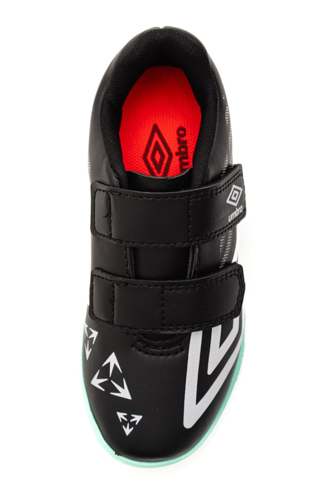 CHUTEIRA UMBRO U07FB00456-125 A Chuteira Futsal Umbro Velocitá Décima Kids foi desenvolvida exclusivamente para o público infantil, com design assimétrico, grafismo geométrico dinâmico e combinação vibrante de cores. O cabedal em material laminado possui serigrafia personalizada e ajuste prático com tiras de velcro. Conta com palmilha interna de EVA forrado e solado de futsal em borracha com tecnologia HYPERGRIP.