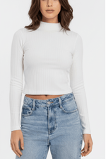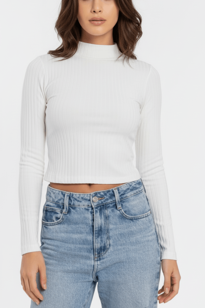 Cropped Cha De Mel 9003 Gola Alta Ribana Manga Longa Off-White