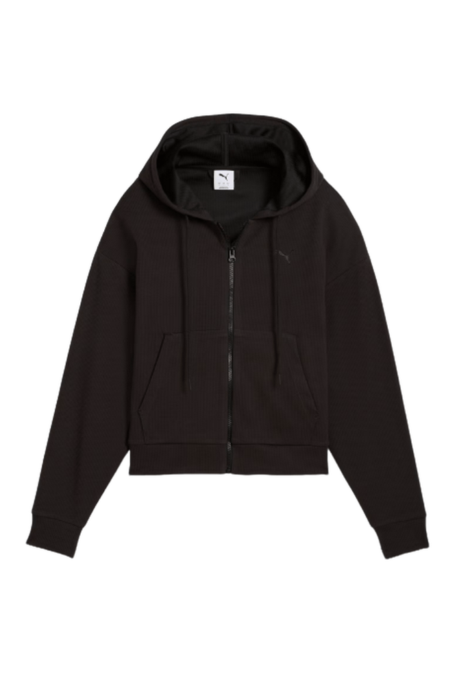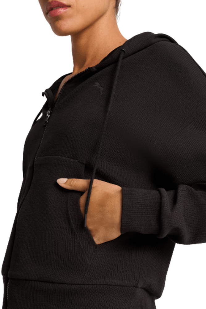 A Jaqueta Puma Moletom Confort Feminina Com Capuz 685056 01 é confeccionada em 61% algodão, 34% poliéster e 5% elastano, garantindo maciez, elasticidade e durabilidade. Possui caimento amplo em estilo largo com comprimento cropped, combinando conforto e modernidade. O corte é descontraído e versátil, ideal para compor produções casuais ou esportivas. O fechamento é feito por zíper frontal, prático e funcional. Conta com capuz ajustável por cordão, que reforça o ar esportivo. Suas mangas são longas com punhos canelados, assim como a barra inferior que também recebe acabamento em punho. Dispõe de dois bolsos frontais funcionais, costuras reforçadas e logo Puma no peito, discreto e autêntico. O design não traz estampas adicionais e não possui forro interno, mantendo o moletom leve e confortável.