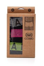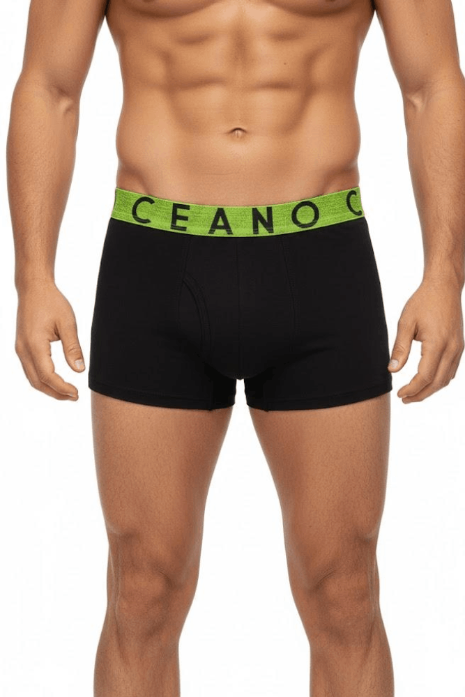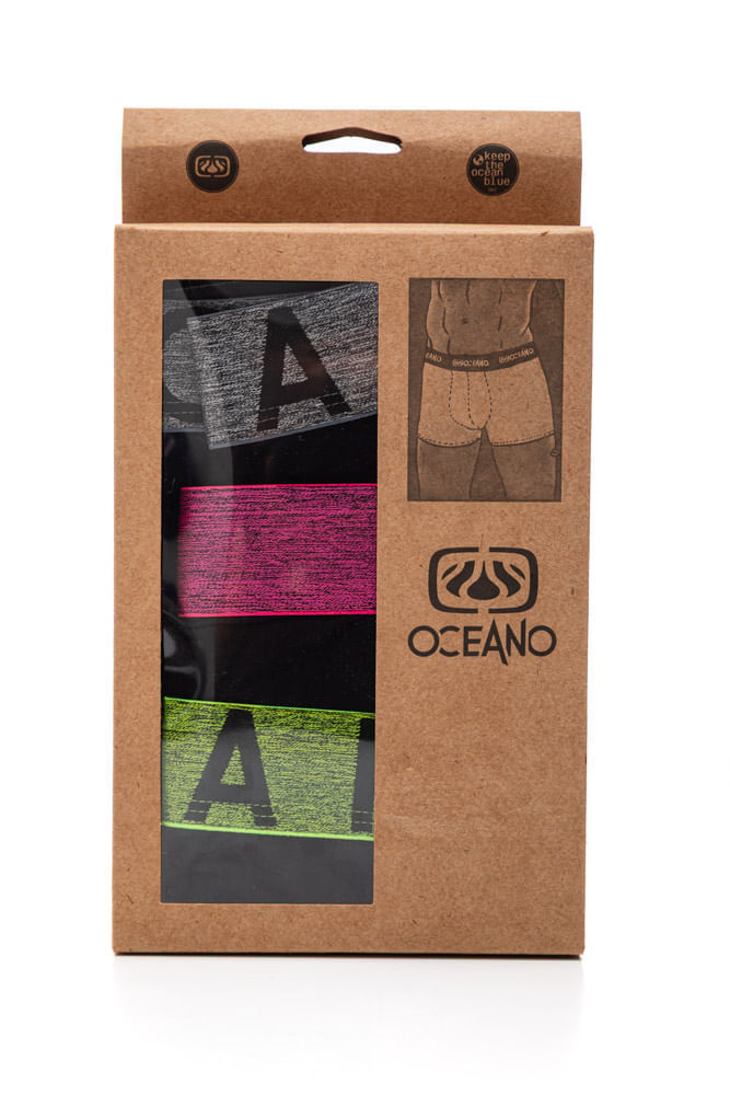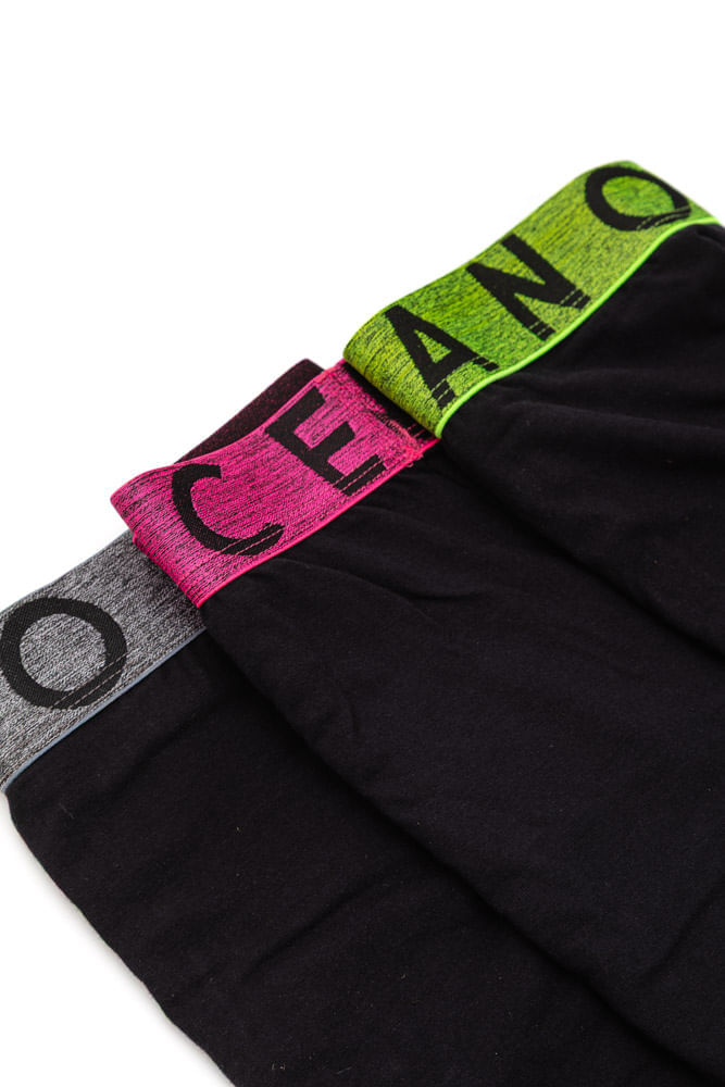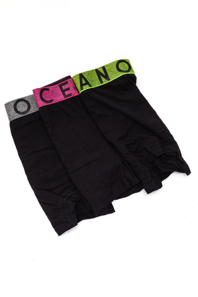 A Kit Cuecas Boxer Masculina Oceano 44626, confeccionada em material têxtil este sendo 96% de algodão e 4% Elastano, de modelagem boxer com elástico personalizado da própria marca, trazendo conforto e comodidade durante o uso dos homens no dia a dia. O mesmo contém 3 unidades na tonalidade preta, com diferencial de cor no cós com nome da marca