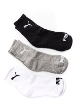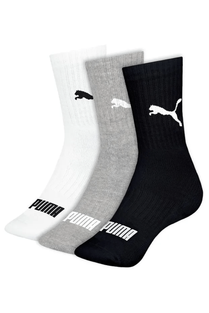 O Kit Meia Puma Cano Médio Masculina 4795.001.5999, é confeccionado em algodão, poliéster e elastano por inteiro e de ótima qualidade. Nesta embalagem, contém 03 (Três) unidades, assim sendo todas em tonalidade mista, predominantemente, branco, preto e cinza. Seu modelo Cano médio ao ser usado com tênis tradicional, fica acima da linha do tornozelo. Sua malha é ventilada facilitando o processo de transpiração dos pés, evitando o acúmulo de bactérias, com textura canelada (ribana) justa no final do cano e no calcanhar e na parte lateral grafia da marca em sentido reto.