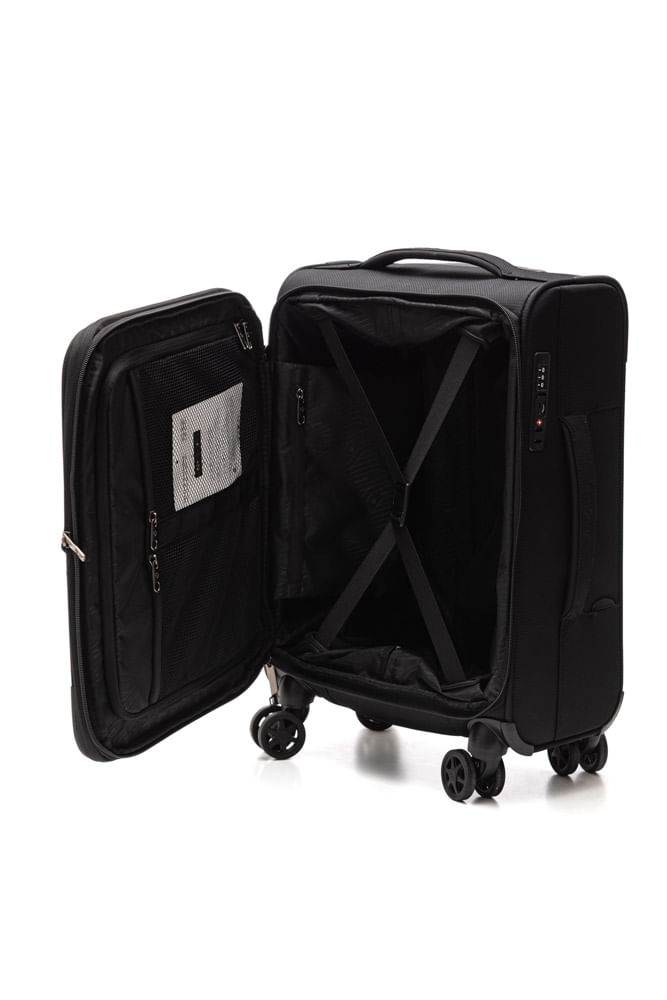 A Mala Soft Samsonite Odyssey-P tamanho bordo é ideal para viagens curtas, unindo leveza, resistência e praticidade. Confeccionada em poliéster de alta qualidade, possui acabamento reforçado e design funcional. Conta com alça superior e lateral para facilitar o manuseio, além de bolso frontal com zíper para acesso rápido. O modelo dispõe de cadeado com segredo acoplado e cadeado TSA incorporado, garantindo mais segurança.A abertura e fechamento são feitos por zíper resistente, com opção expansível para ampliar a capacidade. O puxador retrátil possui botão liberador e regulagem de altura para melhor ajuste. Suas 4 rodas duplas multidirecionais com giro 360° proporcionam deslocamento suave e estável.Na parte interna, é totalmente forrada em poliéster resistente, com cintas elásticas ajustáveis com trava, bolso com zíper e divisor organizador de compartimentos, otimizando o espaço interno.Capacidade: 40L | Peso: 2,3 kg Dimensões: Altura 55 cm | Largura 35 cm | Profundidade 25 cm.