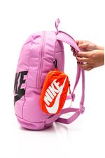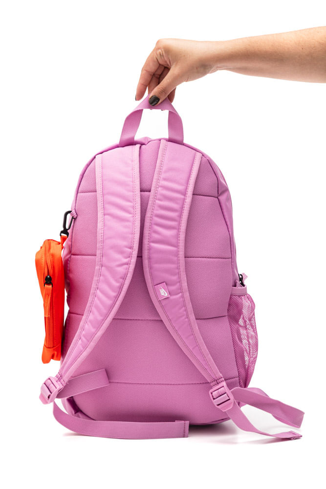 A Mochila Nike Esportiva Feminina HJ4186-503 é confeccionada em poliéster resistente, oferecendo durabilidade e leveza. Possui capacidade de 20 a 21 litros e dimensões aproximadas de 46 cm de altura, 30 cm de largura e 13 a 15 cm de profundidade. O compartimento principal com zíper duplo garante espaço para livros ou itens de treino, enquanto o bolso frontal e o bolso lateral em mesh permitem organização extra. Inclui estojo removível fixado por mosquetão, alças acolchoadas ajustáveis e alça de mão superior. O design esportivo apresenta o logo Nike frontal e acabamento reforçado, combinando estilo, funcionalidade e conforto para atividades escolares ou esportivas.