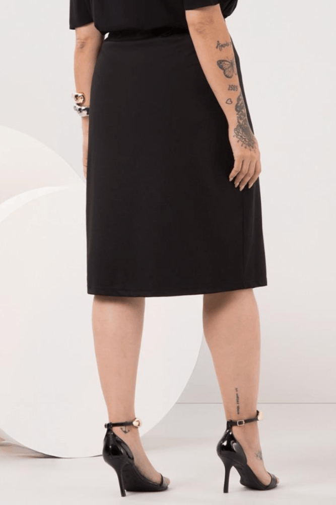 Saia Lunender C0305 com blusa de seda branca de manga curta, cinto fino neutro e sandálias de salto médio. Complete com bolsa tiracolo estruturada e brincos delicados. Ideal para almoço, passeio ou encontro casual elegante, garantindo conforto e estilo moderno. Combine com blazer leve para um toque sofisticado, criando um look versátil e cheio de personalidade.
