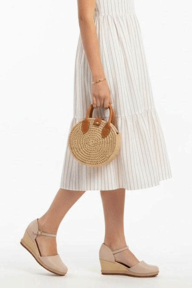 Para um almoço de verão ou passeio casual, combine a Sandália Bebecê Anabela Clássica com um vestido midi leve em tons claros, acessórios em palha e bolsa tiracolo. Complete com óculos de sol modernos e brincos delicados. O look transmite frescor, conforto e elegância, destacando o salto em corda e garantindo estilo sem abrir mão da praticidade.