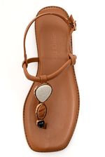 A Sandália Beira Rio Rasteira Feminina Bico Quadrado 8571.103.31437, é uma rasteira feminina que une conforto e sofisticação para o dia a dia. Confeccionada em material sintético tipo napa, possui tiras finas que se ajustam suavemente aos pés. O fechamento no calcanhar com fivela metálica dourada garante segurança ao caminhar. Seu solado em borracha antiderrapante oferece ótima estabilidade, enquanto a palmilha macia com logo timbrado proporciona bem-estar prolongado. O bico quadrado traz um toque moderno, e o salto rasteiro de cerca de 1 cm favorece a leveza no uso. O grande destaque fica por conta da tira central com pedrarias em resina e aros dourados, que valorizam o visual. Versátil e elegante, é ideal para quem busca estilo com conforto em qualquer ocasião.