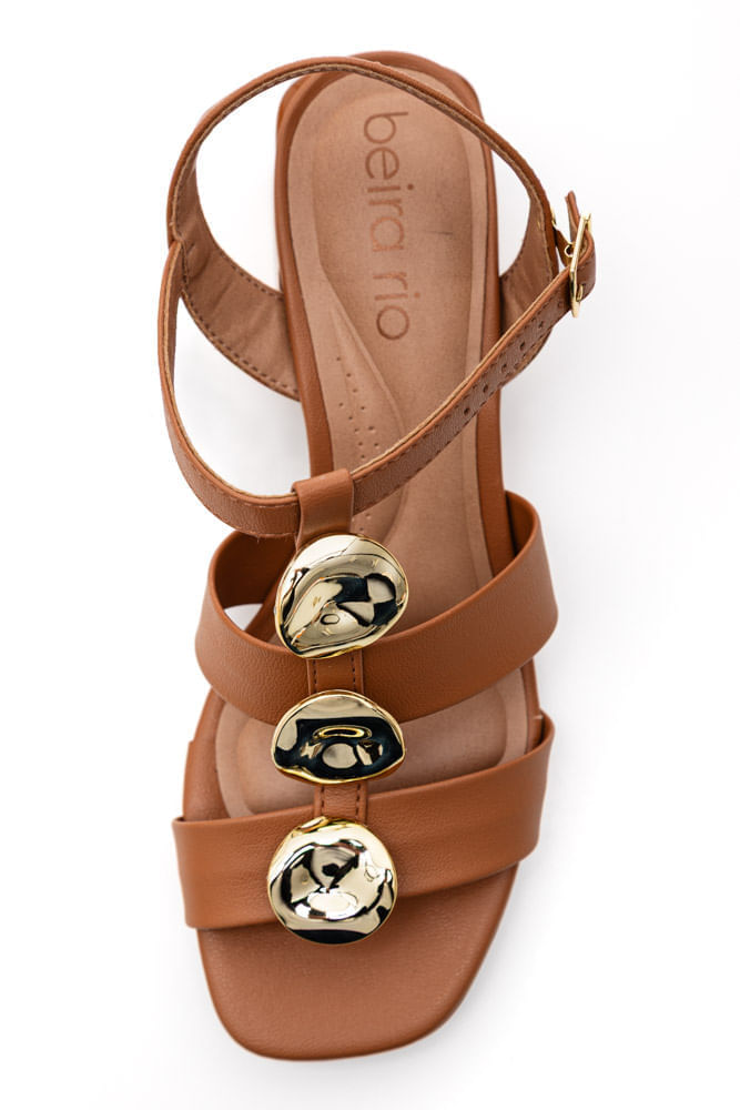 Para um jantar ou evento casual, combine a Sandália Beira Rio Salto Médio com um vestido midi fluido em tom neutro ou terroso. Acrescente uma clutch elegante e acessórios delicados em metal dourado para harmonizar com os apliques da sandália. Finalize com cabelo preso ou semipreso, criando um visual sofisticado, confortável e moderno.