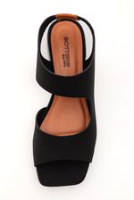 Para um look urbano e elegante, combine a sandália em lycra preta com calça de alfaiataria cropped, blusa em tecido leve e blazer estruturado. Aposte em bolsa média, acessórios discretos e maquiagem natural. Uma produção confortável e sofisticada, ideal para o trabalho, compromissos diurnos ou encontros casuais.