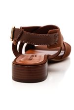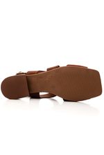 Para um look casual elegante, combine a sandália em lycra marrom com uma calça pantacourt em linho bege e blusa fluida em tons neutros. Finalize com bolsa transversal em couro, acessórios dourados delicados e maquiagem leve, criando uma produção confortável, moderna e perfeita para o dia a dia ou compromissos informais.