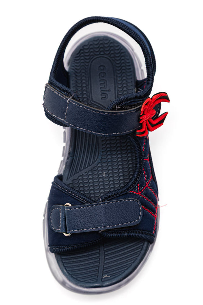 A Sandália Camin Aranha Infantil Com Led 3855-09 é perfeita para acompanhar os passos cheios de energia das crianças. Feita com cabedal em tecido macio e detalhes em couro sintético, combina resistência e conforto. Seu design possui tira ajustável por velcro que facilita o calce e garante firmeza. O destaque fica por conta do detalhe em relevo de uma aranha na tira frontal e do padrão de linhas entrelaçadas que lembram uma teia. A sola translúcida em PVC expandido com luzes de LED traz um toque divertido e seguro, além de ótima aderência ao caminhar.
