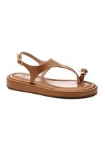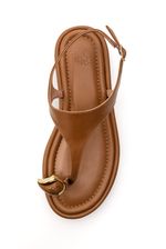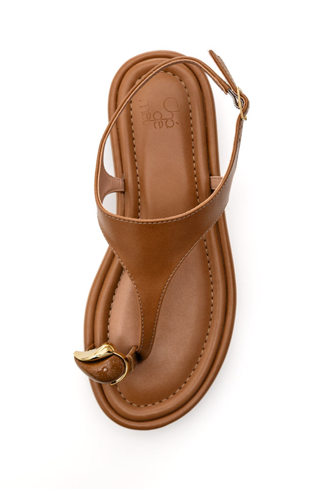 A Sandália Chá De Mel Feminina Detalhe Metálico 8489.92834 é um modelo casual elegante, confeccionado em material sintético liso na cor caramelo, com acabamento fosco sofisticado. Possui tira frontal em formato “T” com encaixe para o dedo e aplicação de detalhe metálico dourado que agrega charme e modernidade ao visual. Conta com fechamento por fivela lateral ajustável, garantindo melhor ajuste aos pés. A palmilha é macia e levemente acolchoada, com costuras aparentes que reforçam o acabamento. O bico é arredondado e o salto é baixo, em base reta com leve plataforma, proporcionando estabilidade. O solado é emborrachado, oferecendo aderência e segurança ao caminhar. Um modelo versátil que une conforto e estilo para o dia a dia.