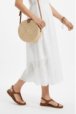 Para um almoço de verão com as amigas, combine a Sandália Chá De Mel Rasteira com um vestido midi estampado em tons claros, bolsa tiracolo de palha e brincos dourados pequenos. Finalize com óculos escuros e cabelo preso em coque baixo. O visual é fresco, elegante e confortável, perfeito para aproveitar o dia com leveza.