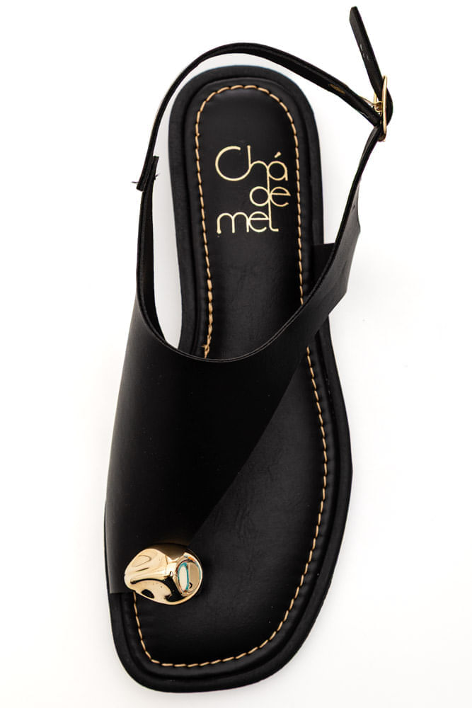 Sandália Cha De Mel Rasteira Feminina Fivela Ajustável 951978 Preto