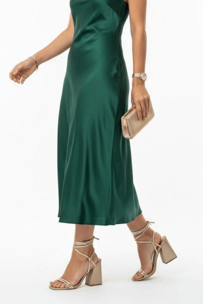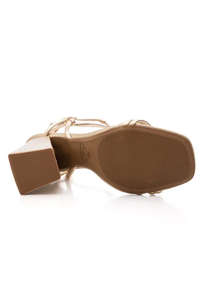 Para um look sofisticado com a Sandália Chá de Mel Salto Bloco 505.7207, combine um vestido midi de seda dourado, clutch metalizada e brincos de argola elegantes. Acrescente uma maquiagem iluminada e um coque baixo para valorizar o destaque das tiras finas da sandália. Perfeita para casamentos, jantares ou festas que pedem glamour com conforto.