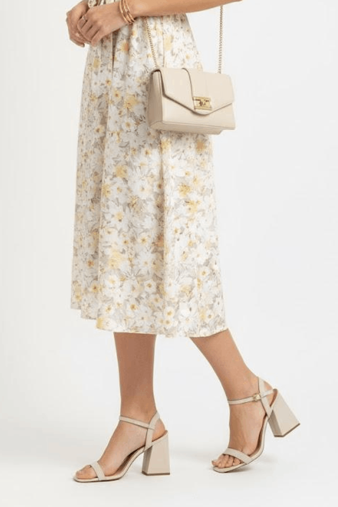 Para um jantar sofisticado, combine a Sandália Chá de Mel Salto Bloco 505.7300 com um vestido midi fluido em tons claros, clutch metálica e brincos delicados. O salto bloco garante conforto e elegância, enquanto o design clean realça a produção. Finalize com maquiagem leve e cabelos soltos, criando um look moderno, feminino e atemporal.