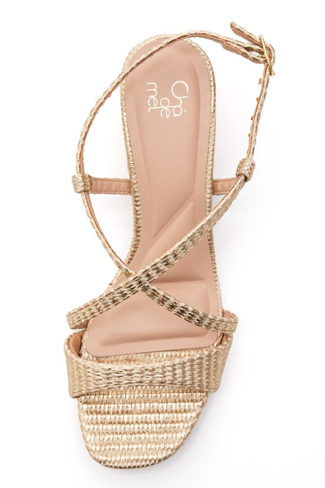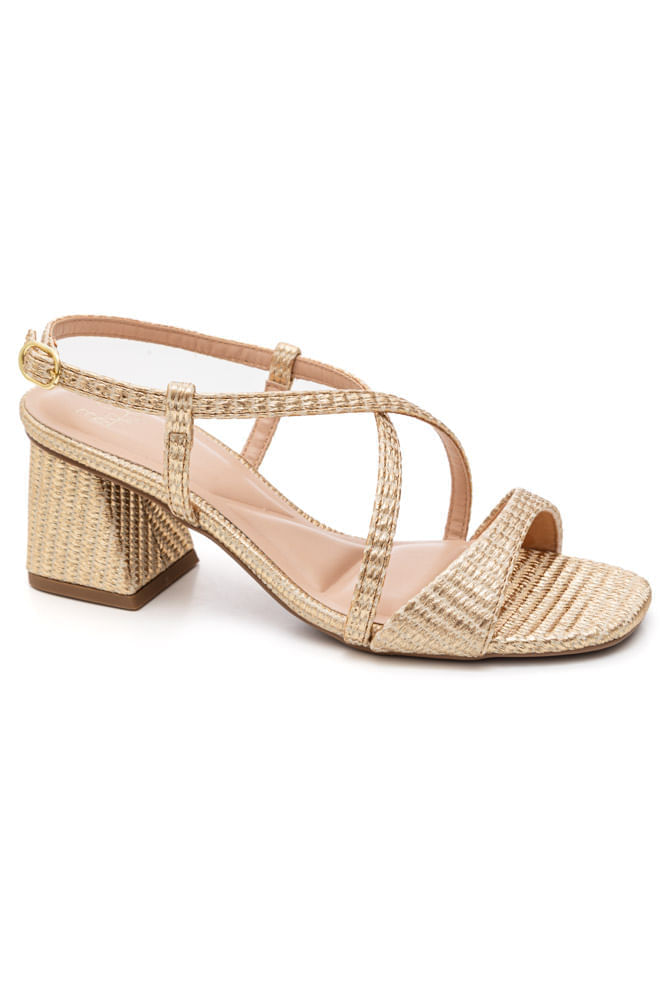 Sandália Chá De Mel Salto Bloco Feminina Tressê 20.221-31 Ouro