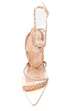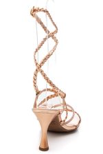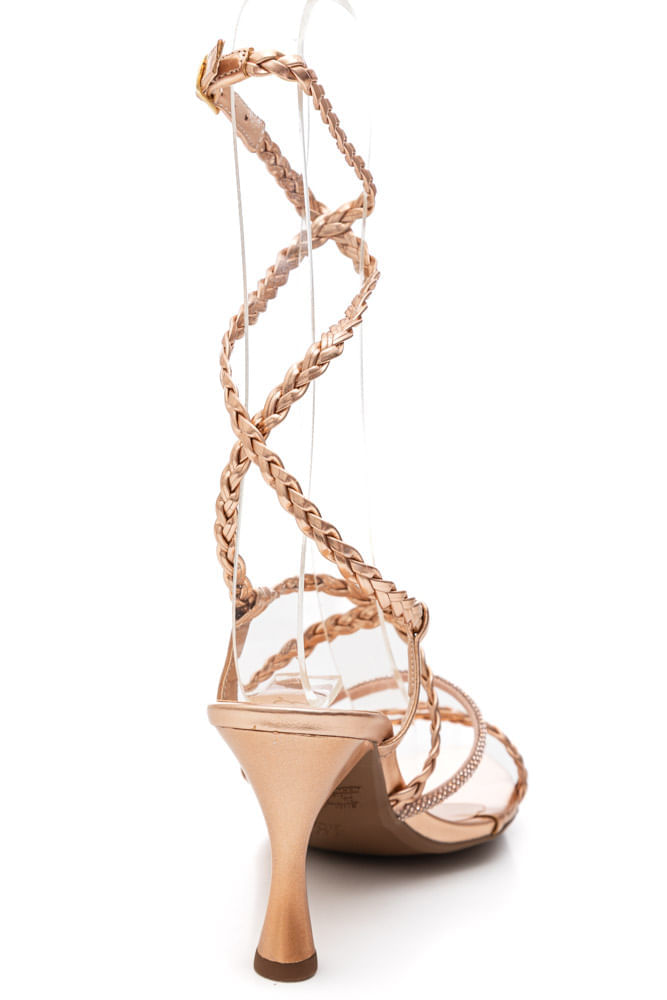 A Sandália Cha De Mel Salto Taça Feminina Tira Trançada 210.836 é a escolha perfeita para quem busca um visual marcante e sofisticado. Confeccionada em material sintético metalizado no tom cobre, ela apresenta tiras finas trançadas com aplicações de brilho que valorizam o cabedal. O fechamento é feito por tiras longas que envolvem o tornozelo e a perna, permitindo ajuste personalizado. O salto taça fino, de altura média a alta, traz elegância e leveza ao caminhar. Seu bico levemente quadrado reforça a modernidade do design, enquanto a palmilha acolchoada garante conforto mesmo em eventos prolongados. A sola em material resistente oferece estabilidade. Um grande benefício é seu poder de transformar qualquer look em uma produção glamourosa e inesquecível.