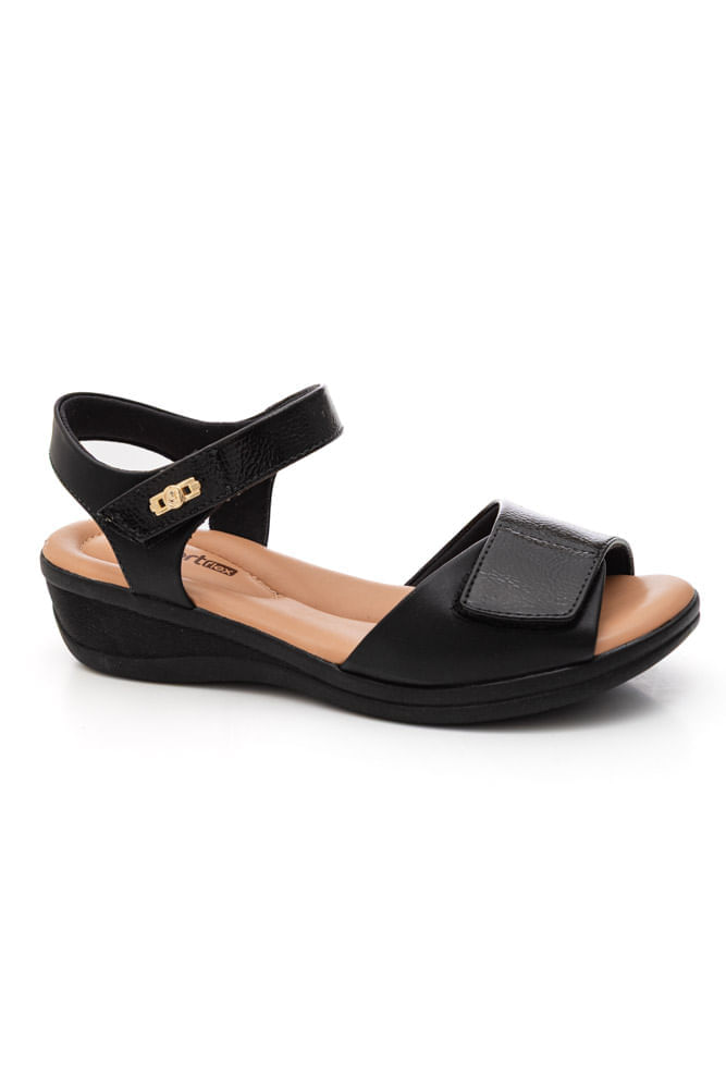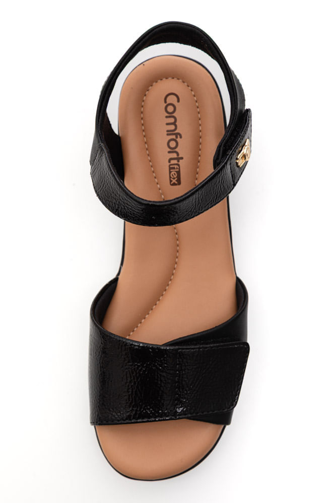A Sandália Comfortflex Casual Feminina Velcro 2588404-01 é a escolha perfeita para quem busca elegância e bem-estar no dia a dia. Produzida em material sintético resistente, apresenta fechamento em contato que facilita o ajuste, além de uma charmosa tira traseira com detalhe metálico que adiciona sofisticação ao visual. O salto anabela de cerca de 4 cm oferece estabilidade e um toque de altura sem abrir mão do conforto. A palmilha macia acomoda os pés com suavidade, tornando cada passo mais leve. Com bico arredondado e solado em material durável que garante segurança na pisada, o modelo combina estética moderna com praticidade. Um benefício marcante é o conforto prolongado, ideal para quem passa muitas horas em movimento.