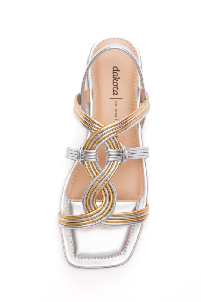 A Sandália Dakota Rasteira Feminina Metalizada Y7947-06 é o calçado ideal para unir estilo e praticidade. Feita com cabedal em material sintético metalizado, ela traz tiras finas entrelaçadas que adicionam um toque sofisticado ao visual. Sua sola rasteira emborrachada oferece conforto e segurança, enquanto a palmilha macia, também revestida em material sintético, garante suavidade a cada passo. Com bico arredondado e calcanhar aberto, a ausência de fechos permite um calce fácil e rápido. O acabamento interno é leve e confortável, perfeito para uso prolongado, seu design minimalista e elegante combina com diversas ocasiões, do casual ao sofisticado.