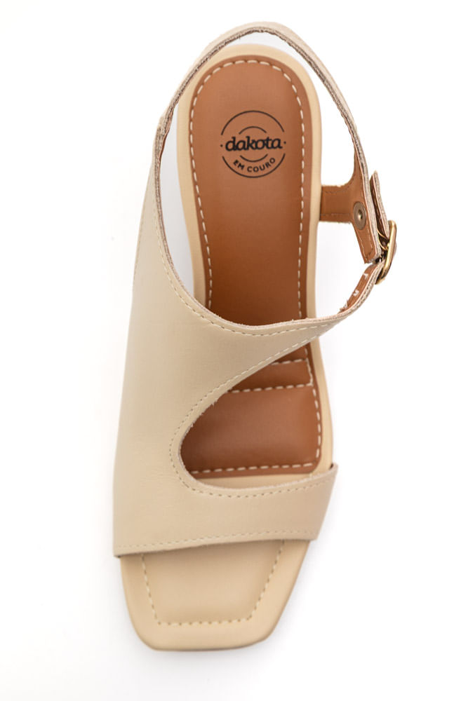 Para um look elegante de trabalho ou jantar, combine a sandália Dakota em couro com calça de alfaiataria ou vestido midi em tons neutros. Acrescente blusa sofisticada, bolsa estruturada e acessórios dourados discretos. O visual fica moderno, confortável e atemporal, perfeito para quem busca praticidade com um toque de sofisticação.