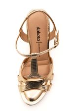 A Sandália Dakota Salto Feminina T-Strap Y9774-04, é a escolha perfeita para quem deseja elegância com personalidade. Pertencente à categoria de sandálias femininas de salto médio, ela é confeccionada em material sintético com acabamento metalizado dourado (ouro claro), trazendo sofisticação imediata ao visual. O cabedal em estilo T-Strap, com tiras cruzadas sobre os dedos, combina superfícies lisas e espelhadas com texturas tramadas e micro-perfuradas, criando profundidade visual e charme extra. Possui fechamento por fivela lateral metálica, garantindo ajuste seguro. A sola sintética oferece boa estabilidade, enquanto a palmilha levemente acolchoada proporciona conforto ao caminhar. O bico arredondado e aberto valoriza o conforto, e o salto fino médio, levemente afunilado, alonga a silhueta. Um grande benefício é unir glamour e estabilidade em um único calçado, ideal para ocasiões especiais.