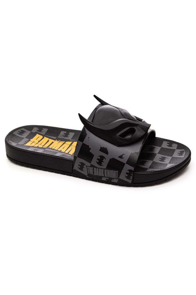 A Sandália Grendene Slide Juvenil Menino Batman 23033-BR109 é a escolha ideal para os pequenos fãs do herói mais icônico de Gotham. Produzida em PVC leve, resistente e flexível, oferece um calce prático sem fechamento, garantindo liberdade e conforto para os dias mais quentes. Seu formato slide com bico arredondado proporciona comodidade extra, enquanto a palmilha macia se ajusta aos pés, oferecendo bem-estar durante todo o uso. O solado em PVC é antiderrapante, trazendo firmeza e segurança em cada passo. O grande destaque está na tira decorada com a máscara do Batman, que adiciona estilo e reforça o espírito aventureiro do personagem. Uma sandália funcional, divertida e confortável, perfeita para acompanhar brincadeiras e passeios com muita atitude.