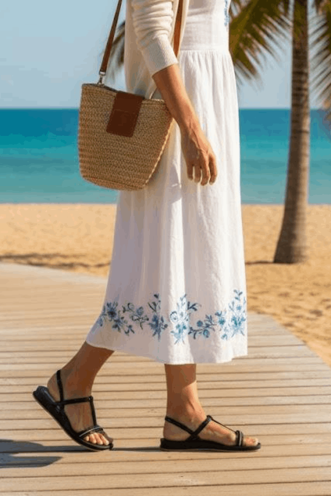 Para um passeio casual de verão, combine a Sandália Ipanema Glow feminina com um vestido leve e fluido em tons pastel. Acrescente uma bolsa tiracolo pequena e acessórios delicados, como brincos dourados e óculos de sol estilosos. Finalize com cabelo preso de forma despojada para um visual confortável, moderno e cheio de charme.