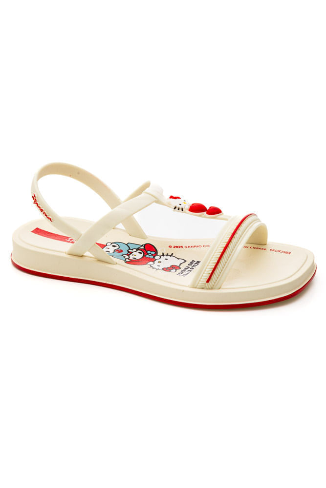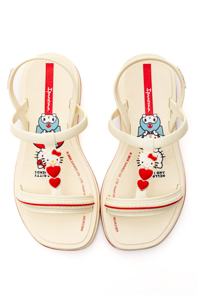 A Sandália Ipanema Infantil Menina Hello Kitty 27431-Bs725 é puro encanto e conforto para o dia a dia das pequenas. Produzida em PVC de alta qualidade, possui solado emborrachado antiderrapante que garante segurança em cada passo. Com bico arredondado, palmilha macia e design anatômico, proporciona bem-estar durante o uso. Seu cabedal traz tiras delicadas com fechamento prático de encaixe, permitindo calce fácil e autonomia para as crianças. O destaque fica por conta do enfeite exclusivo da Hello Kitty segurando dois corações, acompanhado de estampas fofas e cores vibrantes que tornam o visual ainda mais especial. Mais que uma sandália, é um item cheio de estilo que combina charme, praticidade e diversão em um único produto.