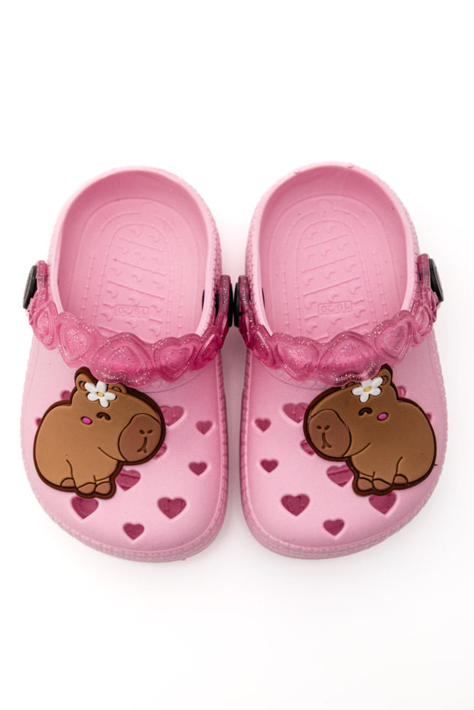 Para um look infantil cheio de conforto e estilo, combine a Sandália Lue Lua Babuche Infantil com um shorts rosa de tecido maleável e uma camiseta branca básica. O visual fica leve e fresquinho, perfeito para brincar no parque ou passear em família, garantindo praticidade, liberdade de movimento e um charme divertido com o detalhe da capivara.