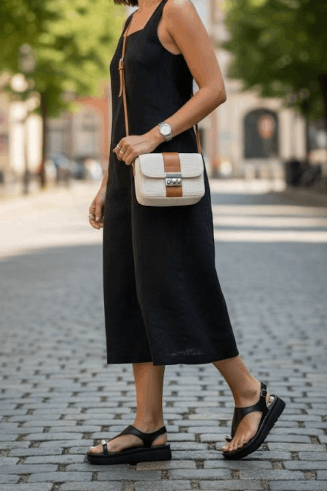 Para um passeio descontraído ou almoço com amigas, combine a Sandália Mississipi Flatform com um vestido midi leve em tom neutro e uma bolsa transversal compacta. Acrescente acessórios discretos, como brincos de argola e óculos de sol estilosos. O resultado é um look moderno, confortável e cheio de charme, perfeito para curtir o dia com estilo e praticidade.