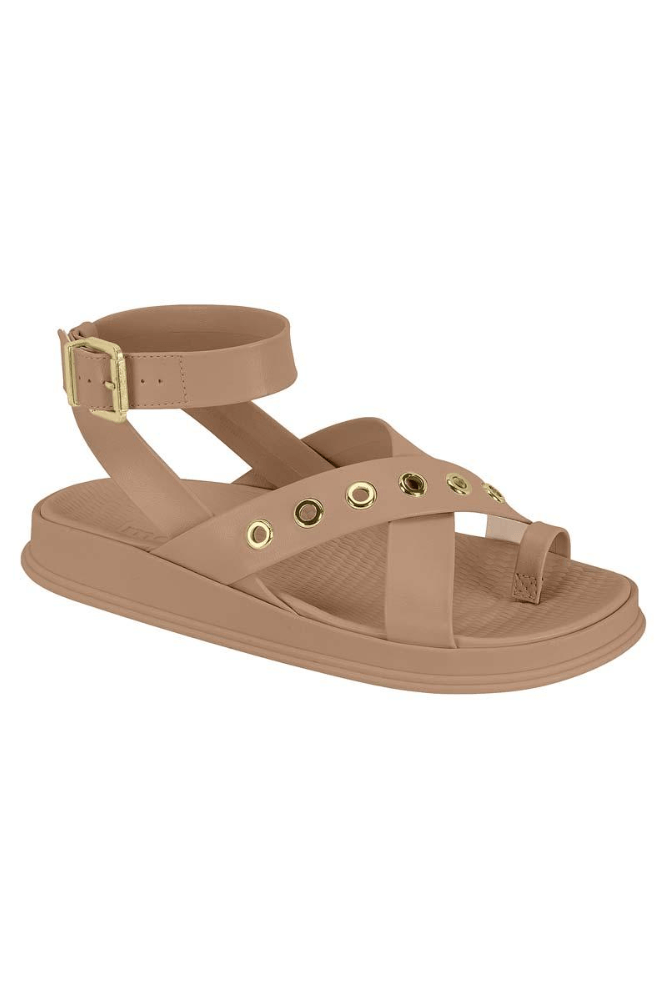 Para um look elegante e confortável, combine a Sandália Moleca Flat com uma saia jeans midi em tom neutro e uma regata preta estruturada. Acrescente acessórios delicados em metal para complementar os detalhes da sandália. Uma bolsa média em couro sintético e brincos discretos finalizam o visual, perfeito para um almoço ou encontro casual com sofisticação.