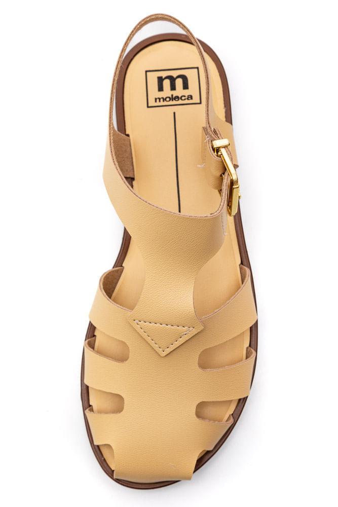 Para um look leve e elegante, combine a Sandália Moleca rasteira com vestido midi floral, bolsa tiracolo em palha e acessórios delicados em dourado. O saltinho baixo garante conforto para um passeio ao ar livre ou encontro descontraído, enquanto o design sofisticado com tiras largas traz charme extra ao visual.